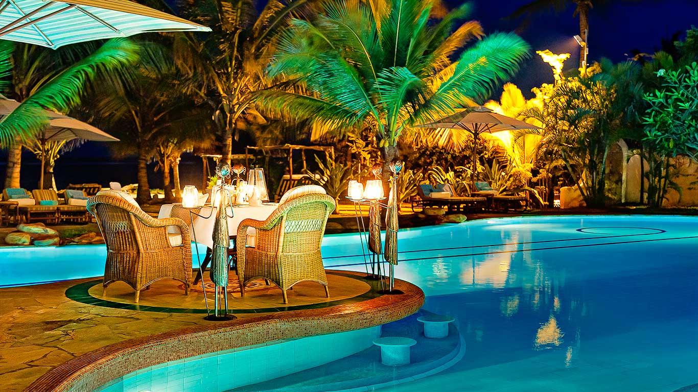 Each of the ten uniquely styled rooms exudes elegance and comfort, with en-suite bathrooms, private balconies, and sun loungers that open out to lush gardens or panoramic views of the Indian Ocean. The architecture is a graceful mix of Swahili and Mediterranean influences, perfectly complemented by vibrant local art and handcrafted decor.